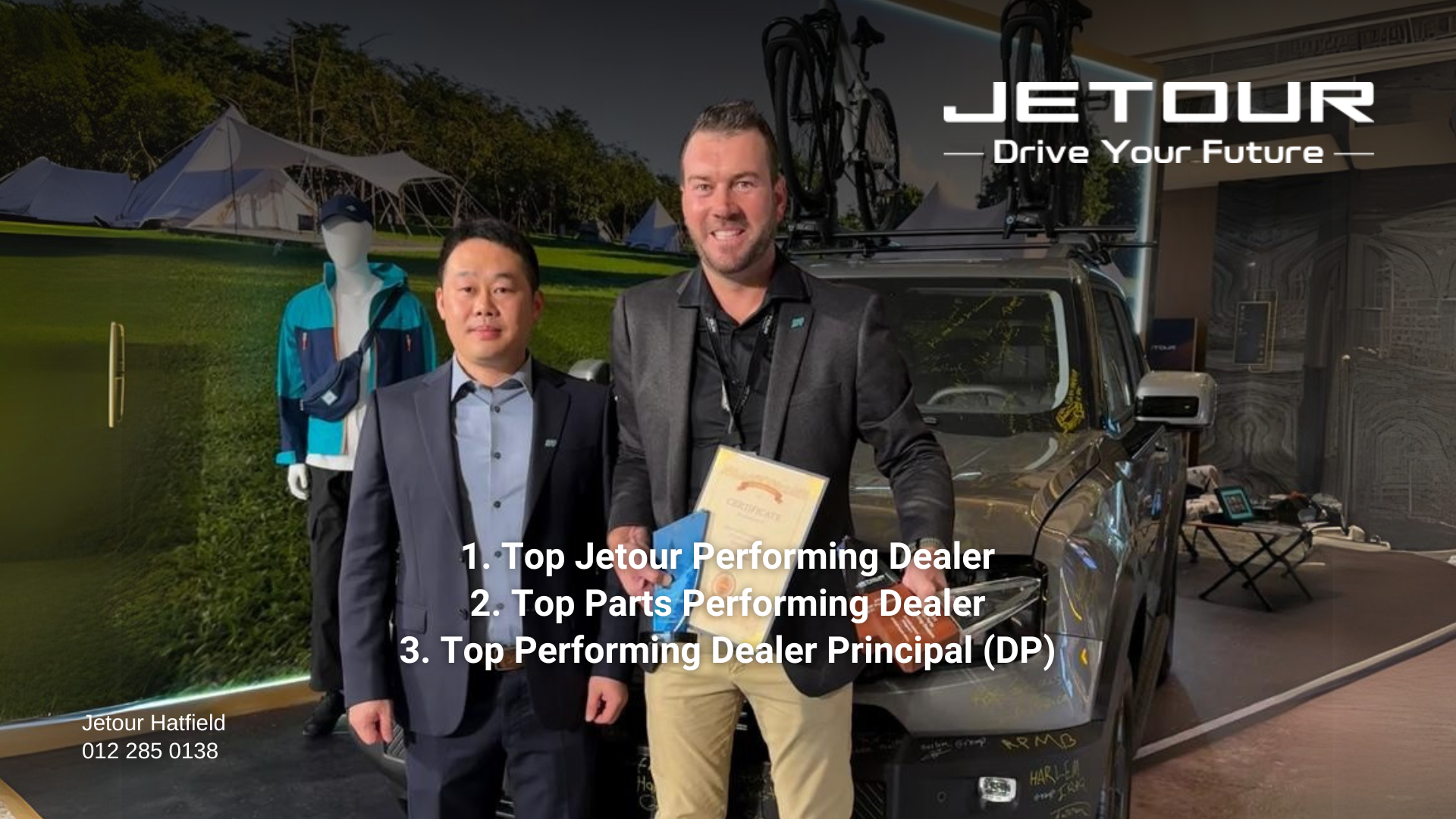 Celebrating Jetour Hatfield’s Outstanding Achievements: Top Dealer, Top Parts Dealer and Dealer Principal Awards.
